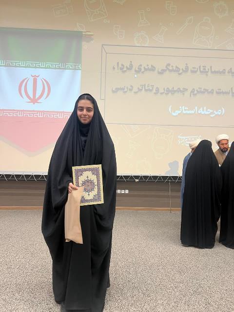 در مراسم تجلیل از برگزیدگان مسابقات فرهنگی- هنری استان قم، دو تن از دانشآموزان فرهیختهی آموزشگاه، موفق به کسب رتبههای برتر استانی شدند.